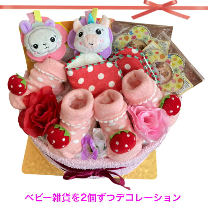 おむつケーキ 女の子 双子 出産祝い ハッピー苺 オムツ パンパース 誕生日 プレゼント