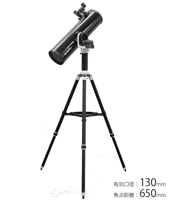 天体望遠鏡 スマホ撮影セット 自動追尾 AZ-GTe + 鏡筒P130N + マウントセット 三脚 スカイウォッチャー WiFi アプリ iPhone Sky-Watcher アリミゾ式スペックAZ-GTe P130N光学系ニュートン式反射望遠鏡有効口径130mm焦点距離650mmF値1/5極限等級12.4等集光力345倍ファインダーレッドドットファインダー鏡筒質量約2.7kg(アイピース除く)付属品アイピース(10mm、25mm)総質量(鏡筒・架台・三脚)約6.7kgマウント電源DC12V (単三形アルカリ乾電池×8本)駆動DCサーボ モーター駆動スピード恒星時~800倍速追尾モード恒星時追尾,月追尾データベース固有名がついた恒星、二重星、メシエ,NGC,IC,Caldwellの各カタログ天体SynScan App対応OSiOS(iOS8.0以降のiPhone,iPad,及びipod touchに対応)、Android OS最大搭載可能重量約5kg本体質量約1.3kg(電池は含まず)三脚+ピラー質量約2.7kg三脚の長さ伸長/約1,215mm、縮長/約690mm保証期間メーカー保証1年備考※AZ-GTeマウントには水平方向の粗動機構がありません。