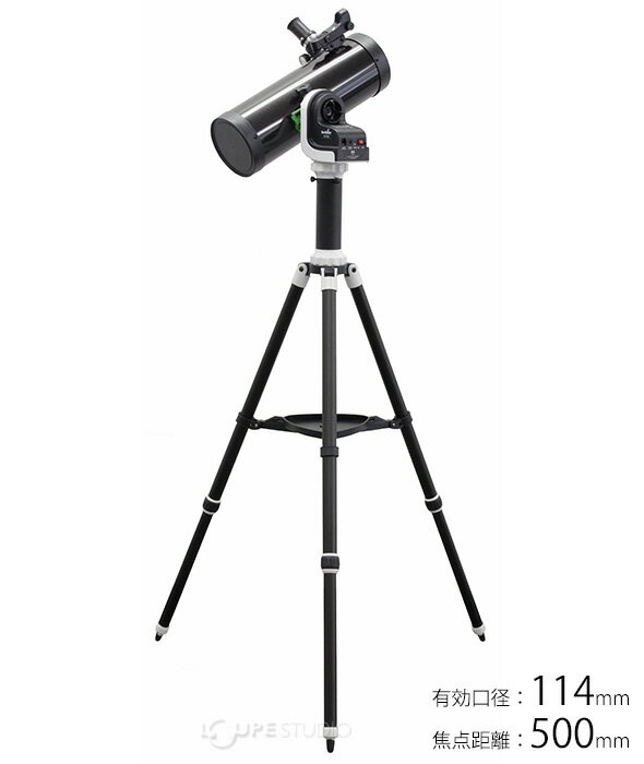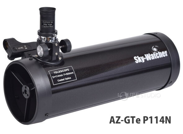 問い合わせ品番:SW1410060002天体望遠鏡 スマホ撮影 天体望遠鏡セット 自動追尾 AZ-GTe + 鏡筒P114N + マウントセット 三脚 スカイウォッチャー WiFi アプリ iPhone Sky-Watcher アリミゾ式スペックAZ-GTe P114N光学系ニュートン式反射望遠鏡有効口径114mm焦点距離500mmF値1/4.4極限等級12.1等集光力265倍ファインダーレッドドットファインダー鏡筒質量約1.6kg(アイピース除く)付属品アイピース(10mm、25mm)総質量(鏡筒・架台・三脚)約5.6kgマウント電源DC12V (単三形アルカリ乾電池×8本)駆動DCサーボ モーター駆動スピード恒星時〜800倍速追尾モード恒星時追尾,月追尾データベース固有名がついた恒星、二重星、メシエ,NGC,IC,Caldwellの各カタログ天体SynScan App対応OSiOS(iOS8.0以降のiPhone,iPad,及びipod touchに対応)、Android OS最大搭載可能重量約5kg本体質量約1.3kg(電池は含まず)三脚+ピラー質量約2.7kg三脚の長さ伸長/約1,215mm、縮長/約690mm※AZ-GTeマウントには水平方向の粗動機構がありません。