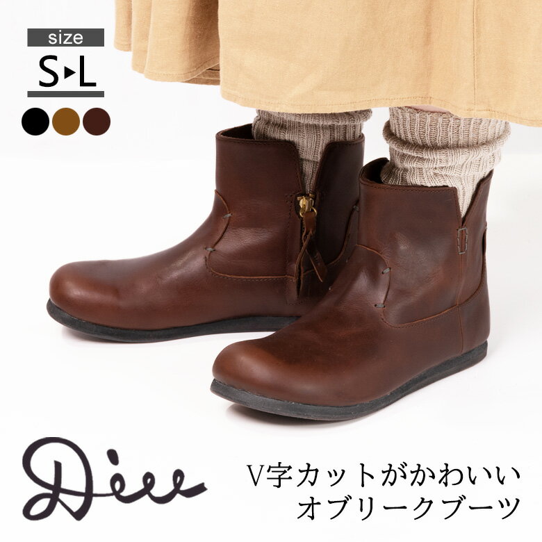 【楽天スーパーSALE対象商品50%OFF 9/4(日)20:00〜9/11(日)1:59】Diu ブーツ ショートブーツ 革靴 サイドゴア レディース 本革 牛革 オブリーク ナチュラル シンプル コンフォート ローヒール 幅広 おしゃれ かわいい 疲れにくい