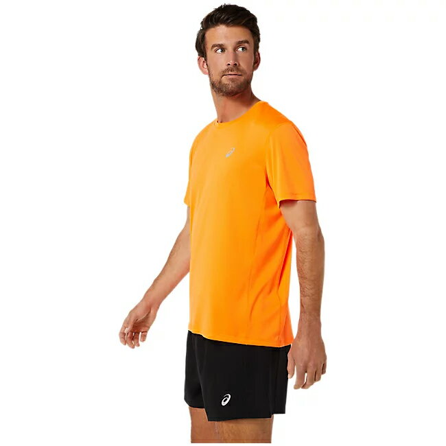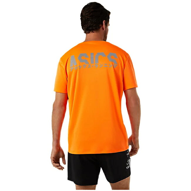 アシックス ランニングASICSショートスリーブトップ ショッキングオレンジ ランニング 男性用 ランニングウェア スポーツウェア トップス シンプル シルエット 夜間 反射材 サスティナブル